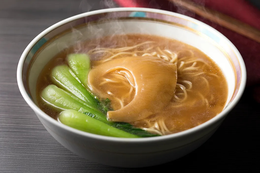 運動しておなかをすかせたあとは、この2日間を締めくくるとっておきのランチタイム。東京ドームホテル直営の中国料理「後楽園飯店」へ。ここでは、ジャイアンツの終身名誉監督ゆかりの一品「フカヒレの姿煮入り汁そば」を味わいます。