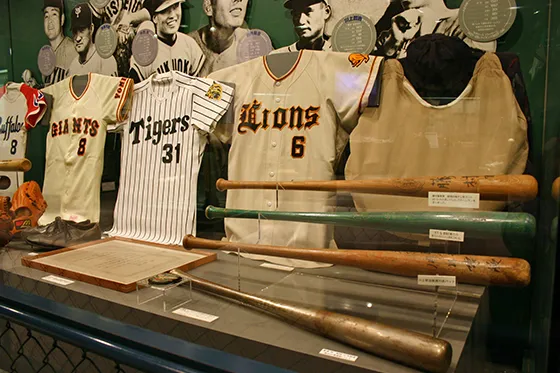 館内には、プロ・アマ問わず国内外の野球に関する貴重な展示品がずらり。日本代表のユニフォームや高校野球の資料など、プロ野球以外の展示も充実しています。もちろん、プロ野球関連の展示も見応え十分。憧れの選手のユニフォームの前では、しばらく佇んでしまいました。