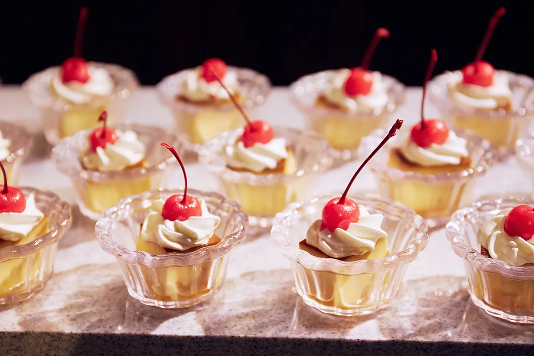 たっぷり料理を楽しんだあとは、お待ちかねのデザートコーナーへ。色とりどりのスイーツに、子どもたちは大喜び。おなかいっぱいのはずなのに、ついまた一口。笑顔が重なり合う、幸せな夜のひとときが流れていきます。