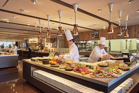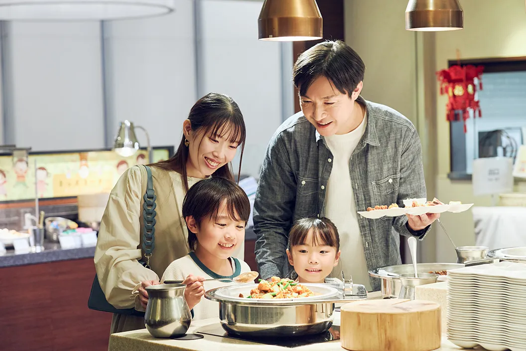 マイメロディの世界観に浸ったあとは、いよいよディナータイム。家族が向かったのは、3階にあるスーパーダイニング「リラッサ」。ホテルシェフが腕を振るう料理を、バラエティ豊かに味わえる人気のブッフェレストランです。上品なリゾート感に包まれた空間でリラックスしつつ、「どんな料理に出会えるんだろう」と家族全員、胸を弾ませます。
