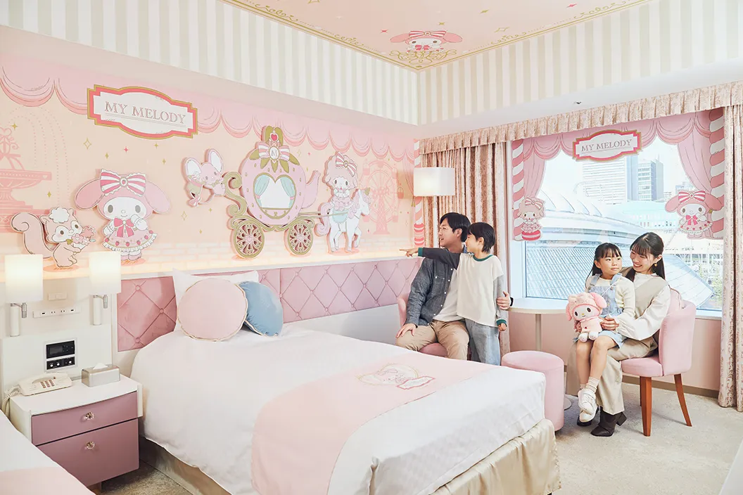 滞在先に選んだのは、「サンリオキャラクタールーム」。じつは、人気キャラクターの「マイメロディ」「クロミ」とコラボしたキャラクタールームが1室ずつあることを知り、お父さんはマイメロディが好きな娘のために、サプライズで予約していたのです。