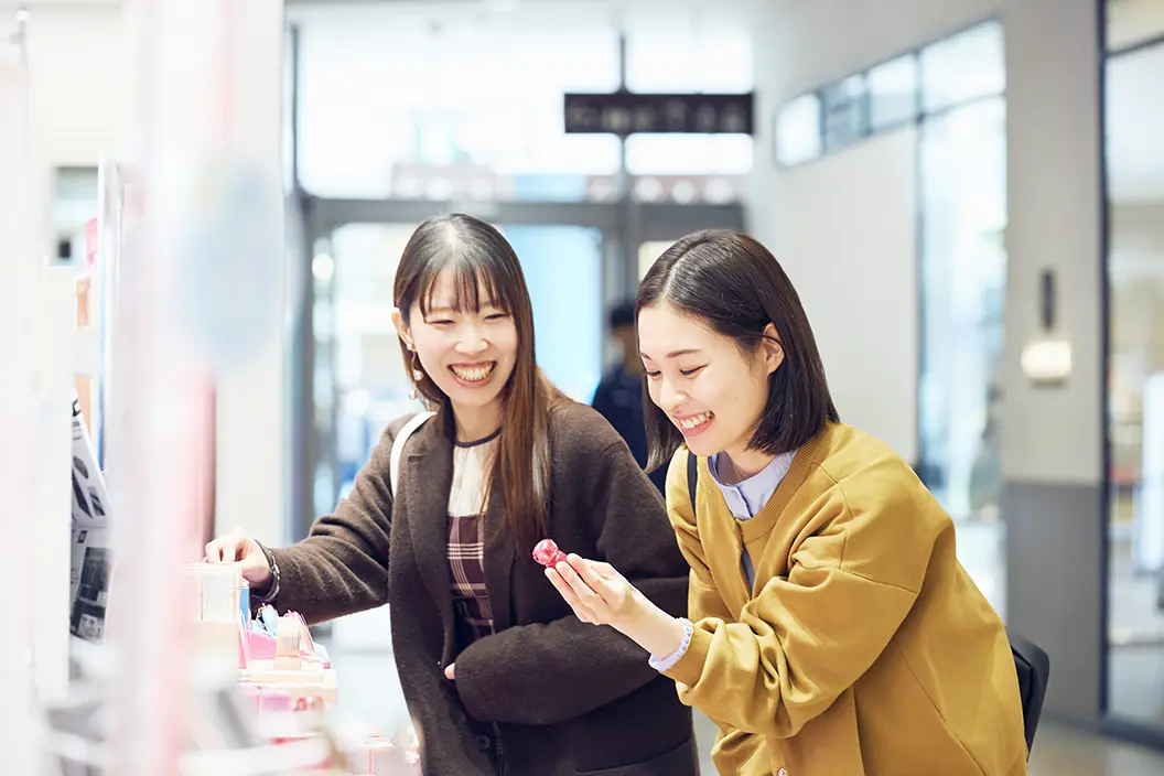 温泉にゆったりと浸かり、エステのトリートメントで日ごろの疲れを解きほぐします。「東京ドーム天然温泉 スパ ラクーア」でリフレッシュ後は、ラクーア2階にあるセレクトコスメショップ「ショップイン東京ドームシティラクーア店」で話題のコスメをチェック。お揃いのフェイスパックを手に取りながら、「今夜一緒に試してみよう」と楽しげな会話が繰り広げられます。