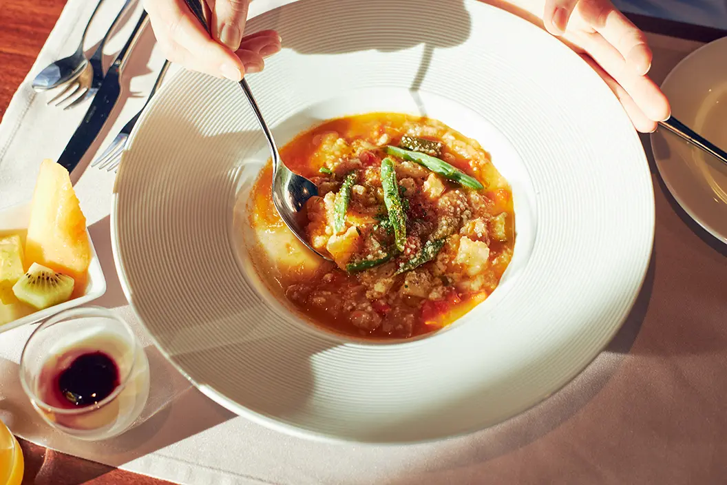 朝の爽やかな光を浴びながら、心踊る朝食を