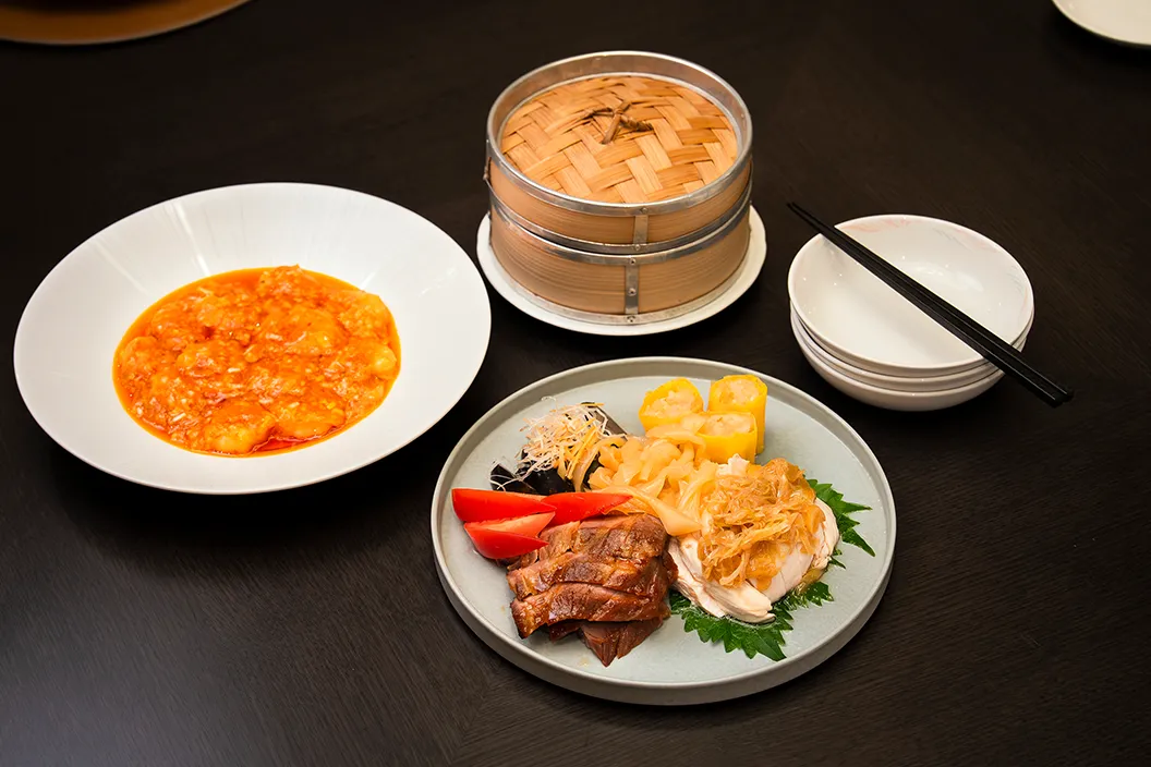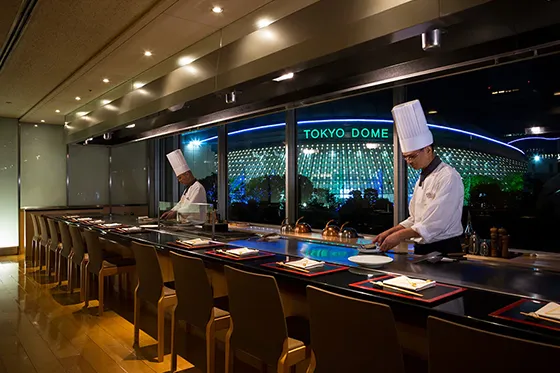 今夜の会食場所は、ホテル隣の後楽園ホールビル2階にある中国料理「後楽園飯店」。1962年に創業した、東京ドームホテル直営の老舗です。2025年に伝統を継承しながら、"ネオ シノワズリ"をコンセプトにした、現代的で洗練された空間へとリニューアルしました。