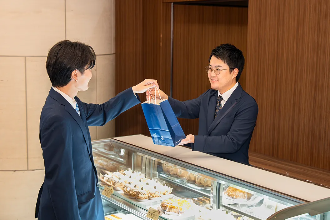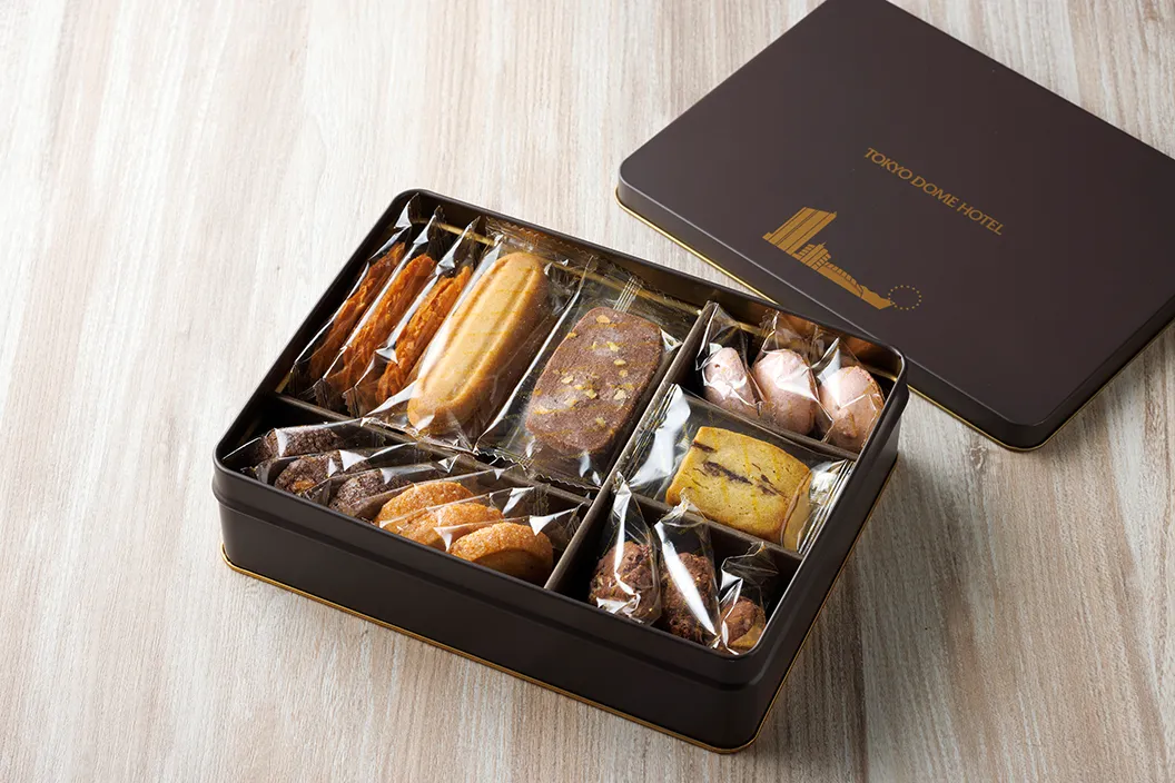 取引先へのお土産として、ロビーラウンジ「ガーデンテラス」でホテルオリジナルの焼き菓子ギフトを購入。お菓子が入った缶のデザインもかわいらしく、きっと取引先にも喜んでいただけそうです。