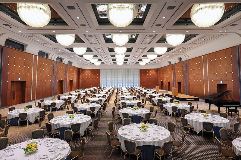 1,000人規模のお客様が一堂に集える大宴会場をはじめ、多目的にご利用いただける中宴会場、眺望の美しいスカイバンケット、