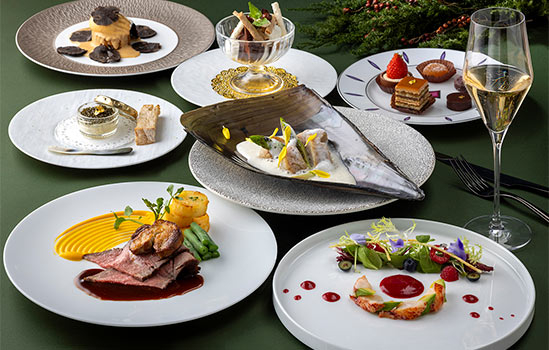 キャビア、オマール海老、黒毛和牛などの贅沢素材を使ったお料理による、味・彩り・香り・食感まで芸術性の高いクリスマスディナーコース。