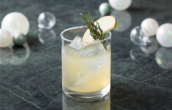 ウォッカとアップルジュースを合わせた、リンゴの爽やかさが際立つカクテル。グラスの淵をシュガースノースタイルで仕上げ、冬の煌めきを表現しました。