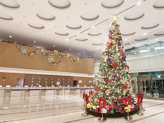 テーマは「Colorful Harmony」。伝統的な赤とゴールドのツリーに、鮮やかなカラフルオーナメントを加えることで、多様な色彩が共鳴しあう、華やかなツリーに仕上げました。それぞれの色は、訪れる人々の個性や思い出を象徴し、様々な想いをツリーに集結させたような、温かなクリスマスを演出いたします。