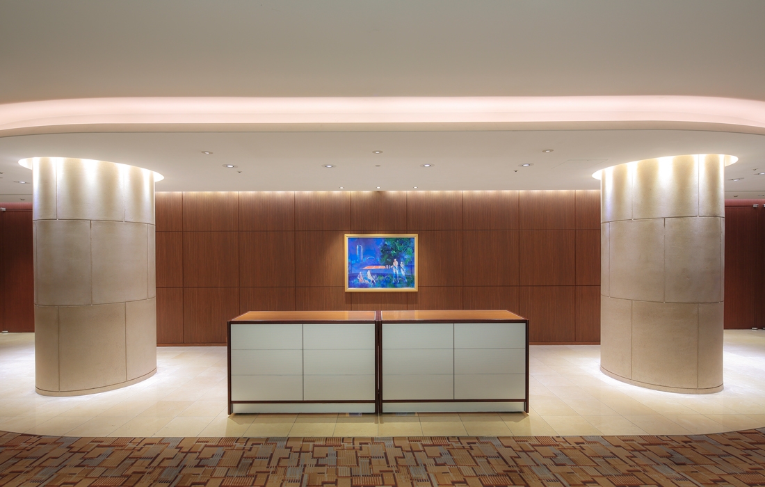A banquet room with an easy-to-use shape that can be used for multiple purposes. The design theme of the lighting is the “Flare of Light”. Guests can relax in a splendid atmosphere at reception events or parties.
