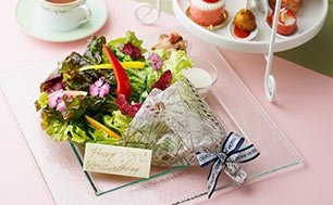 ブーケに見立てたシーザーサラダにメッセージプレートを添えた、記念日やお祝いにもぴったりなプランもご用意しております。