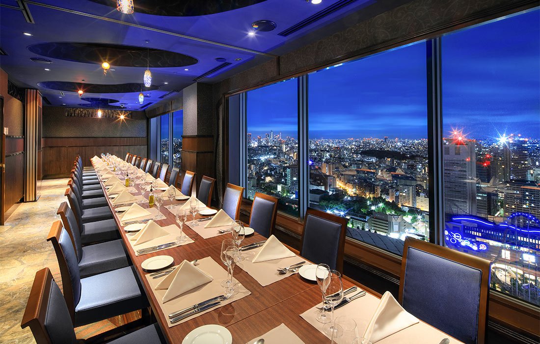 ノースダイニング(北側)からは東京ドームや池袋など、遮るものがない迫力あるパノラマ風景が広がります。サウスダイニング(南側)からは、丸の内や新宿の摩天楼など、都心を一望できる煌びやかな夜景をお愉しみいただけます。