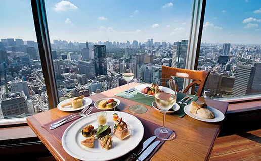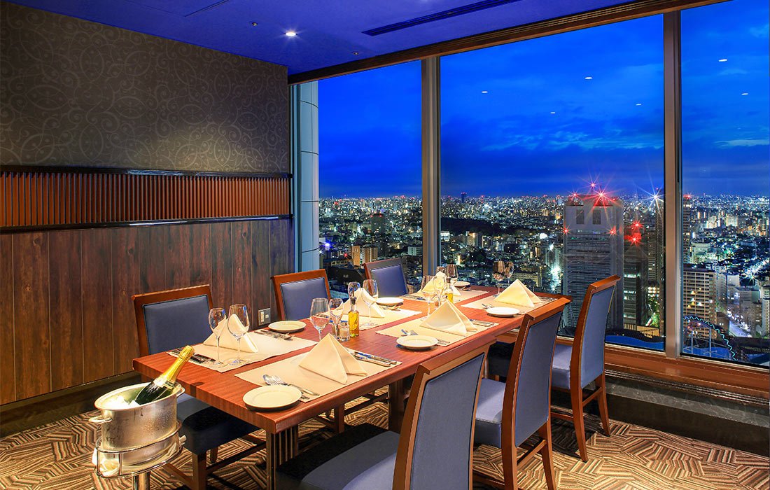 全席南側に位置しており、澄んだ空には遠く富士山を、ディナータイムには目の前に摩天楼の夜景が広がります。