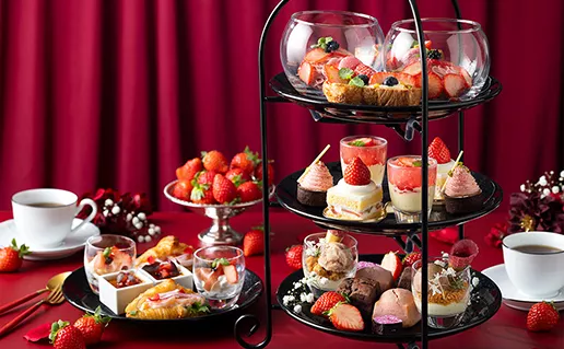 ホテル最上階で楽しめるアフタヌーンティー。150mの眺望とともに優雅なティータイムを。