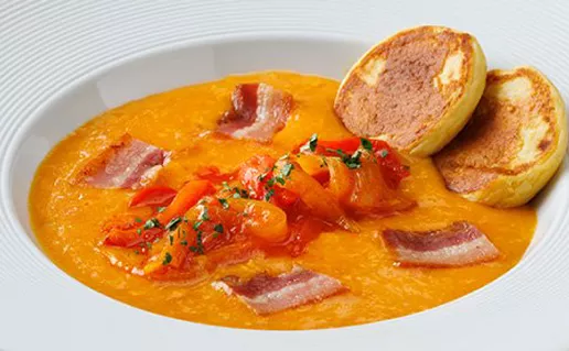 バスク風ピペラードとパンチェッタ じゃがいものクレープ添え