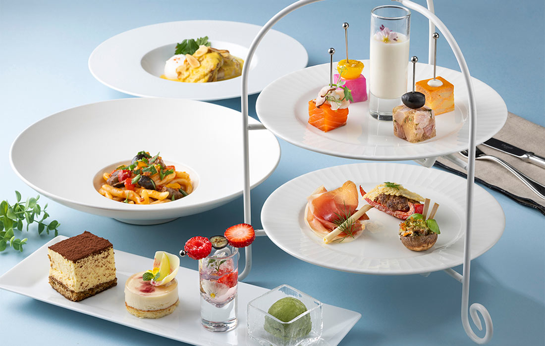 ホテル最上階(地上150m)で澄みきった青空を眺めながらの絶景イタリアンランチ。鶏もも肉の煮込み ペピトリア風や、真鯛と有頭海老のズッパ仕立て「サルスエラ」などのメインディッシュをお選びいただけます。