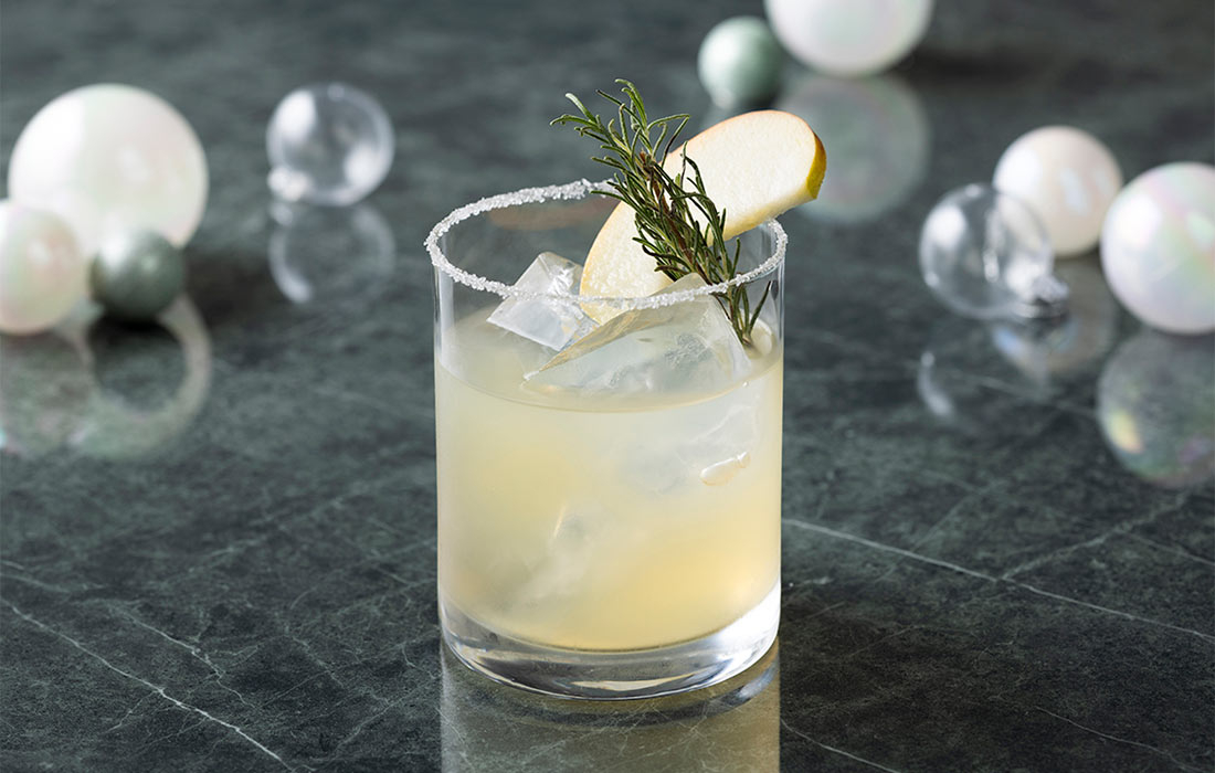 | Lumina -ルミナ- | ウォッカとアップルジュースを合わせた、リンゴの爽やかさが際立つカクテル。グラスの淵をシュガースノースタイルで仕上げ、冬の煌めきを表現しました。東京ドームシティ ウィンターイルミネーションを見下ろしながらお楽しみください。 |
