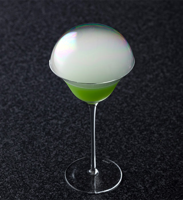 Le DOME(ル・ドーム) [¥2,900] | さわやかなベルガモットリキュールとオレンジリキュールを合わせた、甘口ながらも爽やかさのあるカクテルです。球場の芝生をイメージしたカラーと東京ドームを模したバブルの演出をお楽しみいただけます。 |