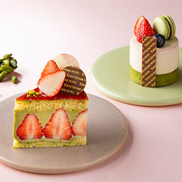 赤と緑のコントラストが美しい、少し大人の味わいの、新緑の季節のスイーツをご用意いたしました。