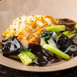 昭和、平成、令和と全国のファンから愛され続けた「飯店名物 フカヒレの姿煮入り汁そば」の伝統の味を守りつつ、料理長の革新的なアレンジで新たに誕生したメニュー。上海蟹味噌と身の旨味が凝縮されたスープに、エノキ・しいたけ・筍の風味と食感を加えた、最後の1滴まで飲み干したくなる逸品。