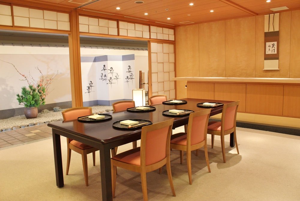 ※ダイニングの逸品料理、鉄板焼「祇園」、天婦羅「嵯峨野」、寿司「清水」のお料理は各コーナーでのご提供とさせていただいております。個室でのご用意はございませんので、あらかじめご了承ください。