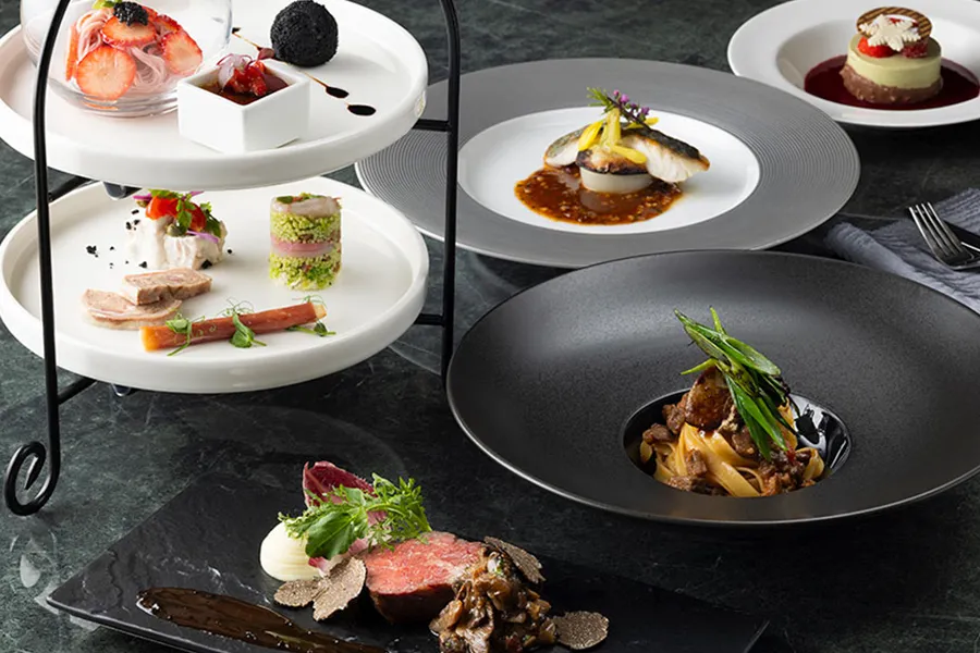 ホテル最上階の風景を一望しながら、こだわりのイタリア料理やアフタヌーンティーをお楽しみください。