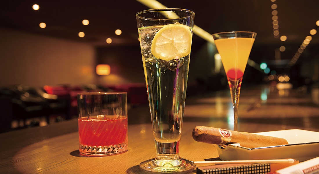18.44メートルのロングカウンターから眺める東京ドームシティのイルミネーションが美しいメインバー。コンセプトは「お酒と料理のベストマッチ」。おつまみを超えた本格料理が味わえます。