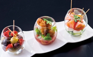 | フルーツトマトとモッツァレラチーズのピンチョス | 【S】¥880 【L】¥1,540 |