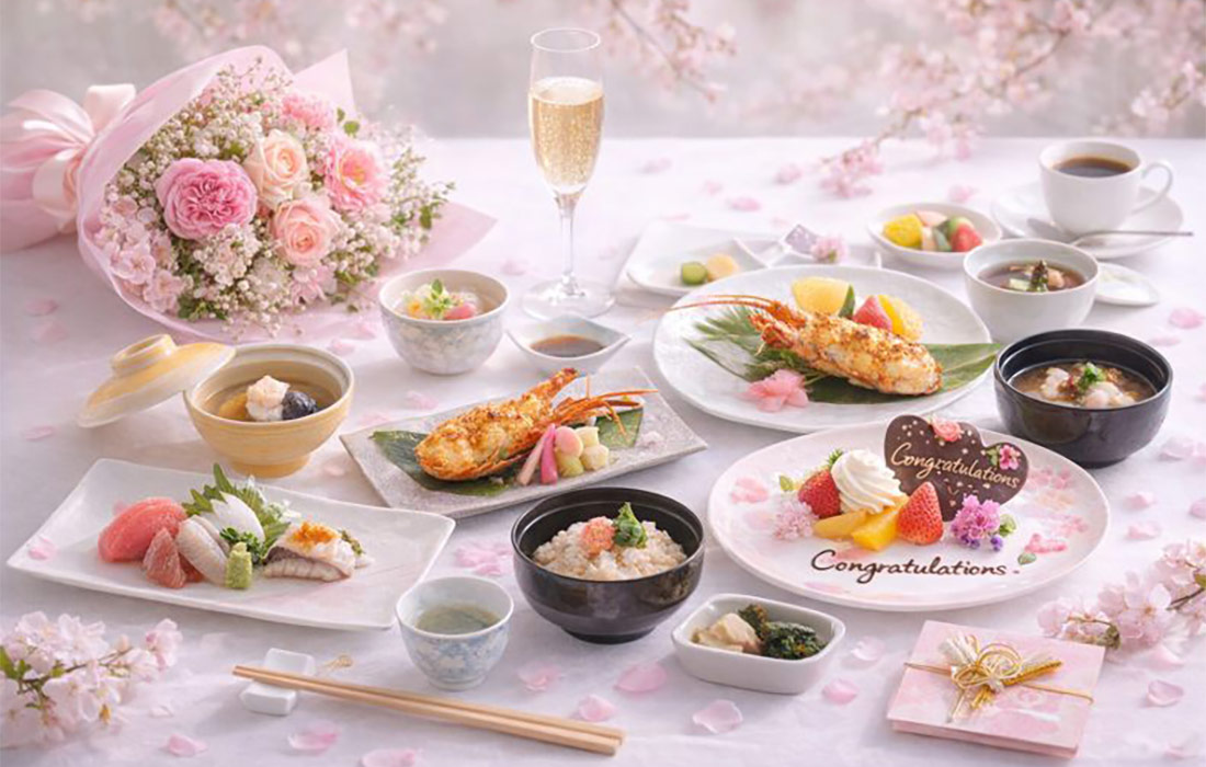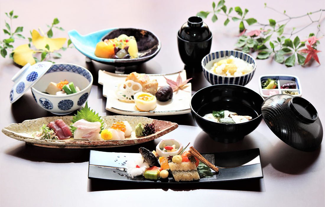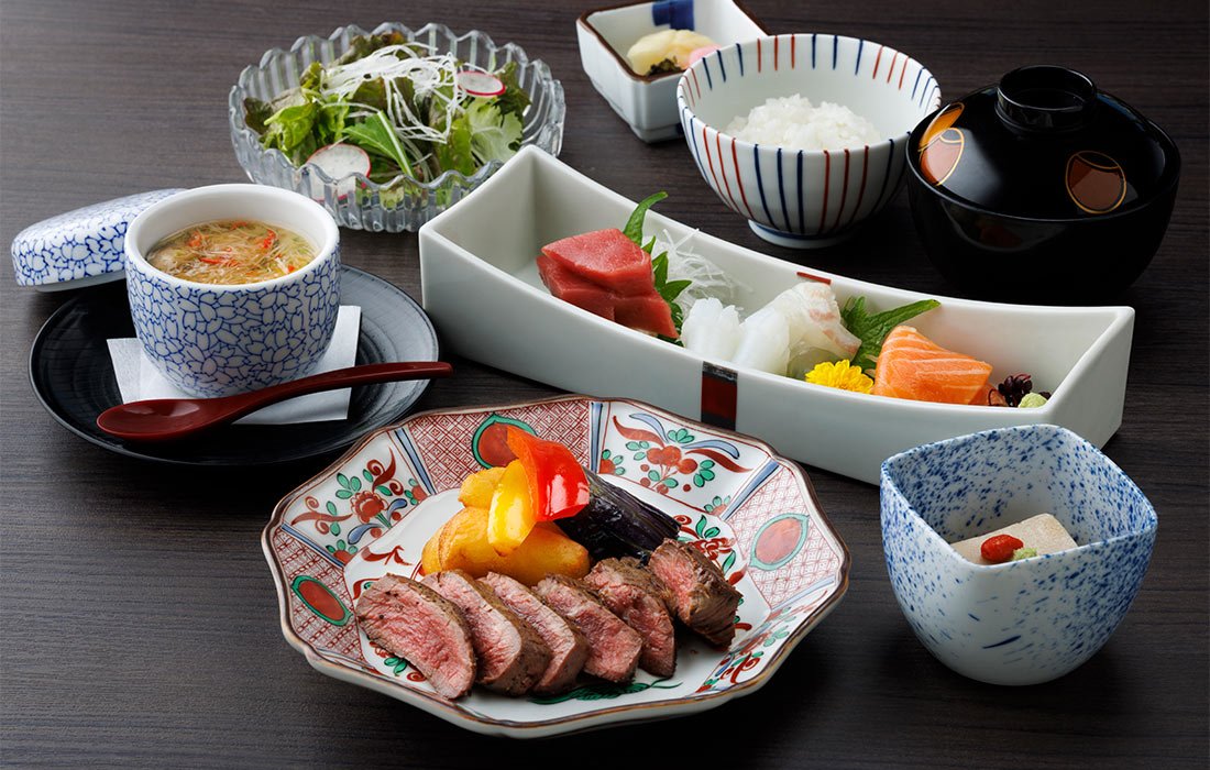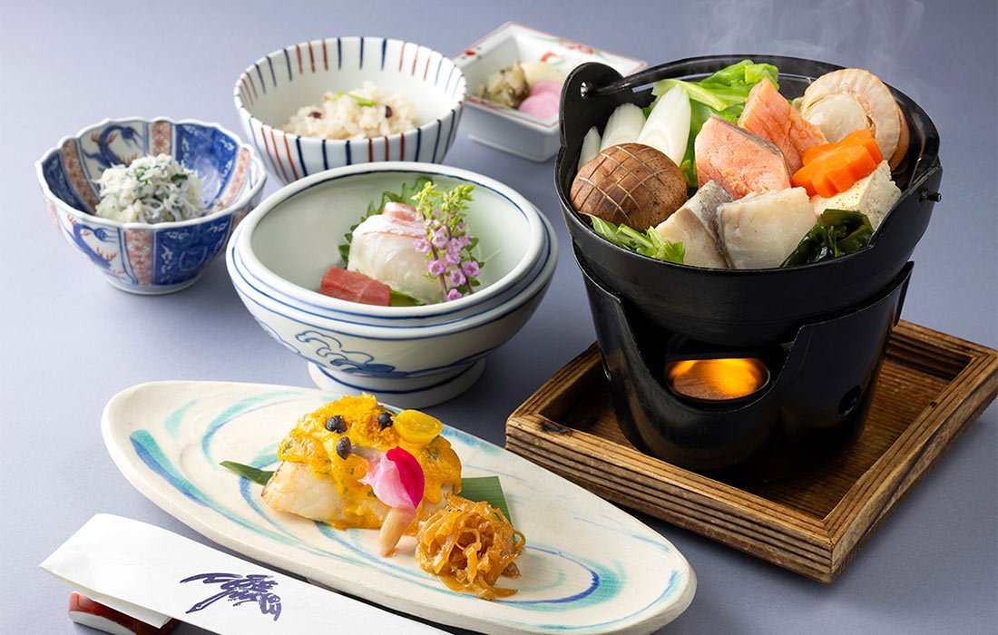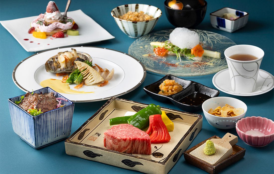 ※和食会席は和食堂または個室のみ、鉄板焼「祇園」、天婦羅「嵯峨野」、寿司「清水」のお料理は、それぞれ各コーナーのみでのご提供とさせていただいております。ご了承ください。