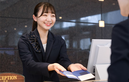 整理券を配布して、順番にチェックインをご案内しております。整理券は1階ロビーにて配布いたしますので、ホテルへご到着時にロビースタッフへお声がけください。整理券の二次元コードにて、館外でもスマートフォンで順番をご確認いただけます。 事前のお荷物のお預かりも承っておりますので、お気軽にお申し付けください。
