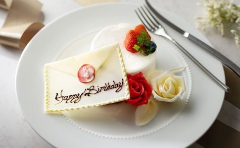オプションでホテルシェフが手掛ける特製ケーキをご用意。お二人でお召し上がりいただきやすいサイズのケーキに、手紙をモチーフとしたメッセージプレートを添えてご提供いたします。