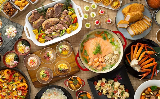 洋食、中華、和食、スイーツなど、バラエティ豊かなメニューの数々をブッフェスタイルでお楽しみいただけます。