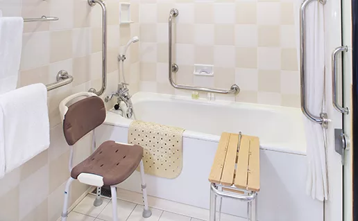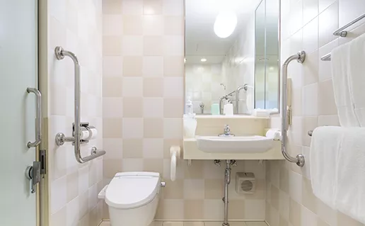 車椅子をご利用のお客様が快適にお過ごしいただけるよう、特別に設計したアクセシブルルーム。ベッドとベッドの間を90cmに広げ、クローゼットや浴室設計なども特別な仕様を施しています。