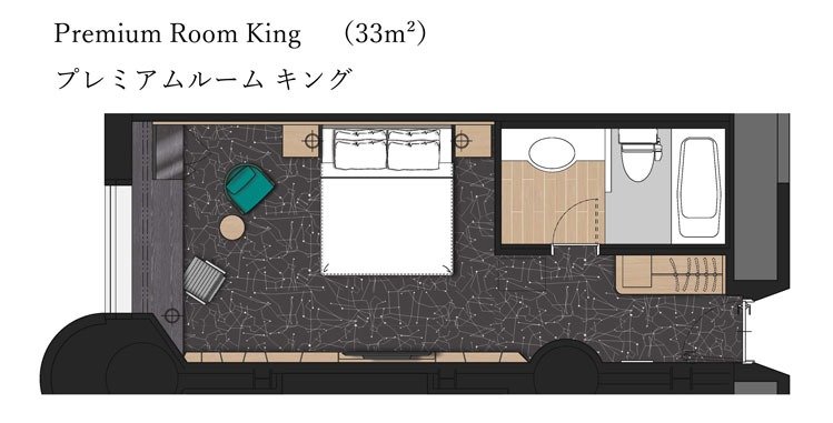 Urban Classicsのコンセプトのもと、モノトーンな装いで洗練された空間。窓際に広がるライティングカウンターでお仕事が終わったら、ROOM BARから酒類をチョイスし、眼下に東京ドームを眺めつつグラスを傾けるのも一興です。