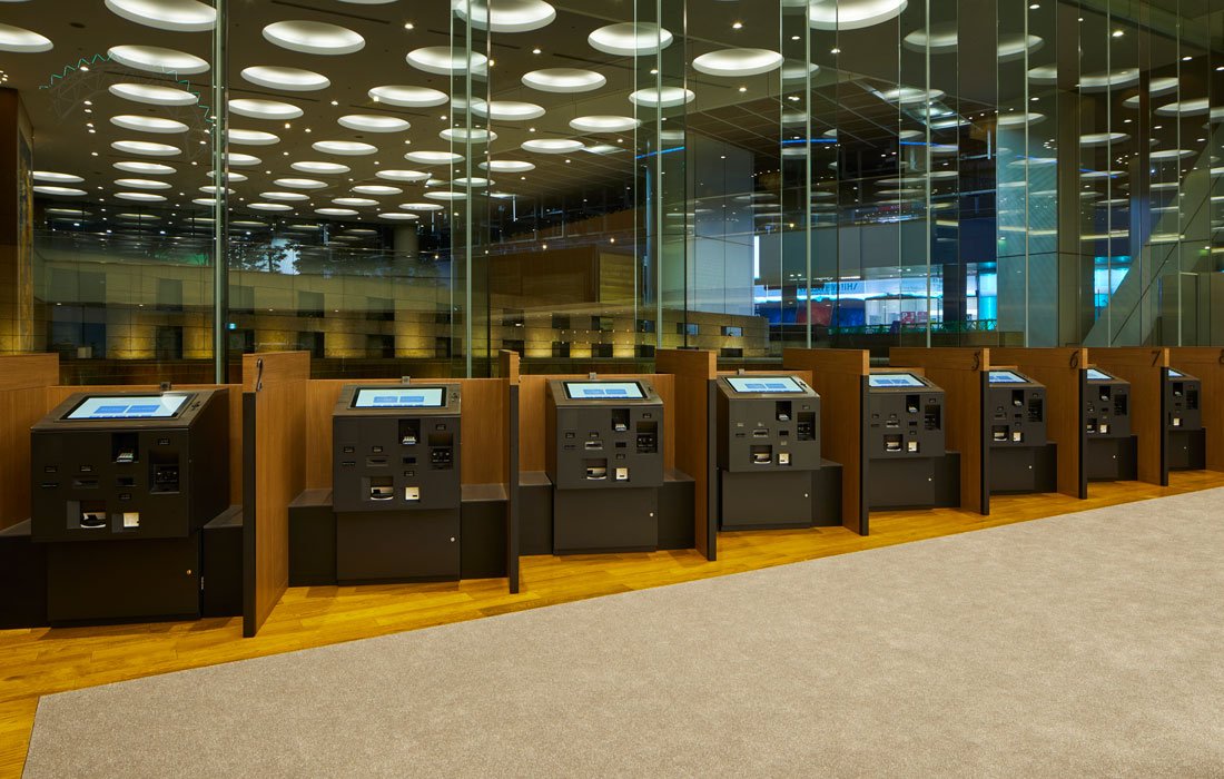 セルフチェックイン機にてお手続きを承ります。セルフチェックイン機をご利用いただくことでスムーズにチェックインが可能です。