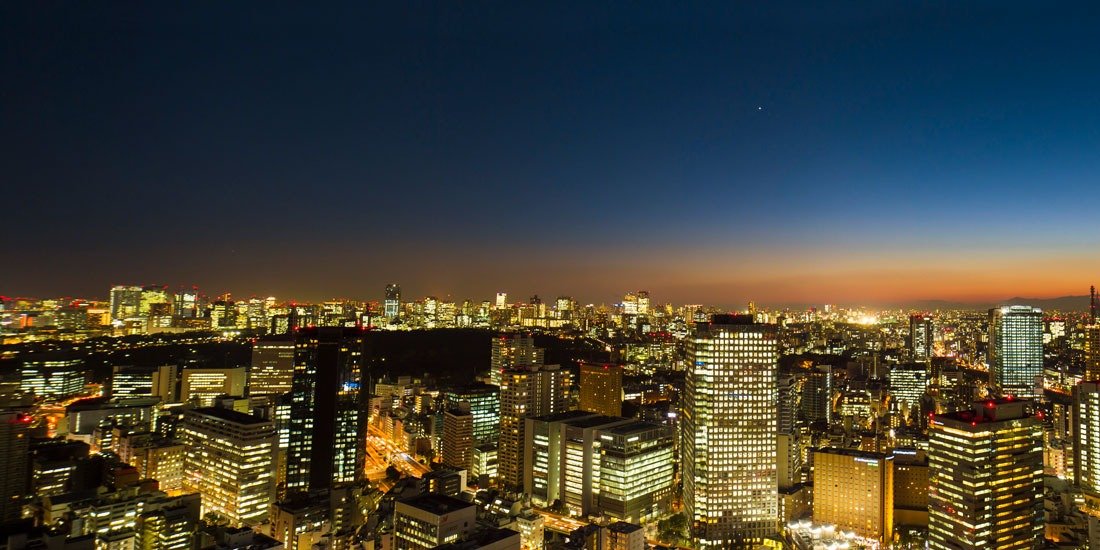 高層階のパレス側からは、丸の内や新宿のオフィスビル群や皇居、夜になるとオフィスビルに灯りがつき、都心の夜景を見下ろす東京ドームホテルならではの風景を味わえます。