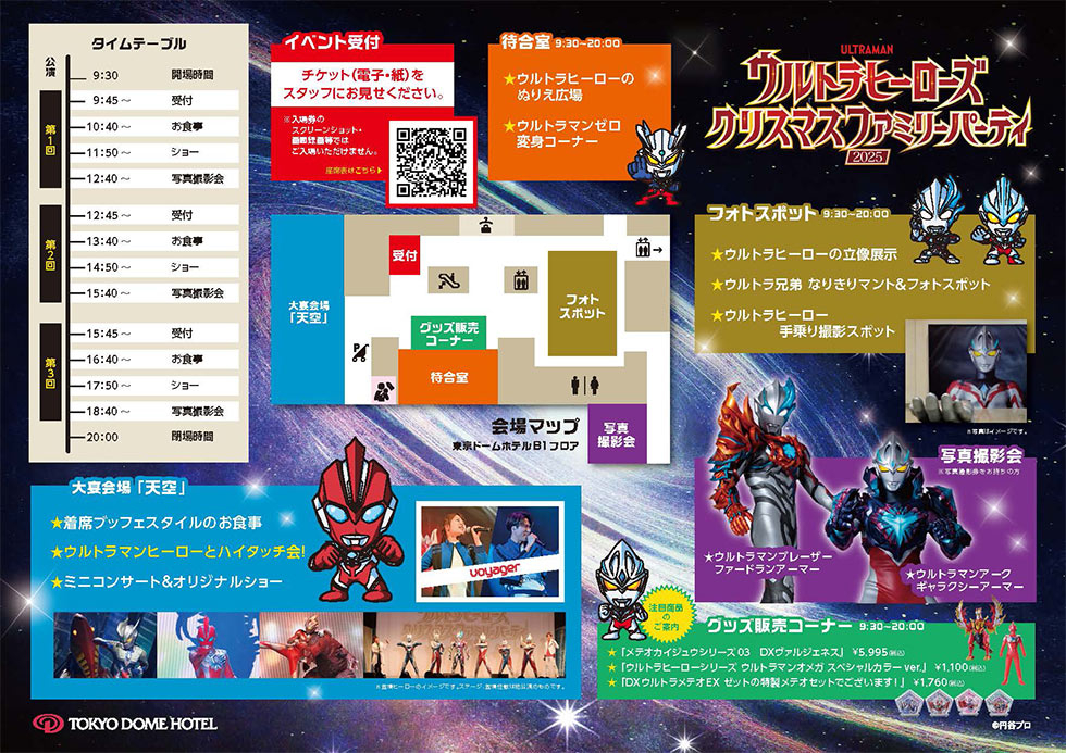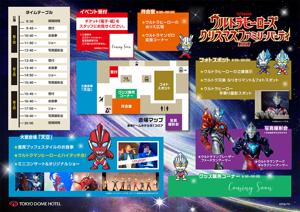 2025年12月21日(日)、東京ドームホテルにて「ウルトラヒーローズクリスマスファミリーパーティ2025」を開催!本イベントでは、「ウルトラマンオメガ」をはじめとしたウルトラヒーローが繰り広げる迫力満点のショーをお楽しみいただけるほか、ホテルシェフが手掛けるブッフェはお子様に人気のメニューなどバラエティ豊かなラインナップにてご提供いたします。