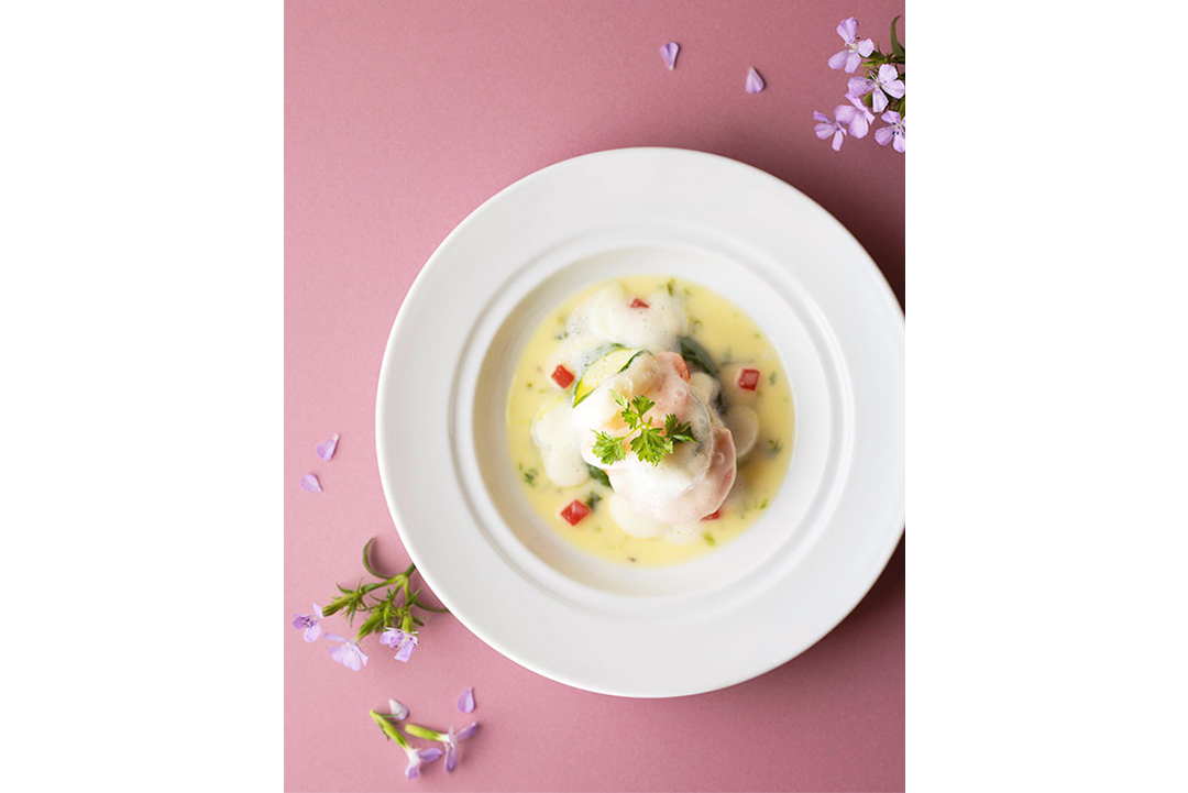 吟味された素材と匠の技が奏でるハーモニー。フランス料理の新たな可能性を探求しつつ、一品一品を華やかに、あでやかに仕上げ、新しい人生の幕開けを祝福いたします。