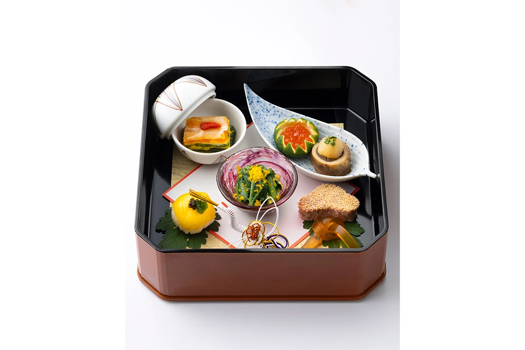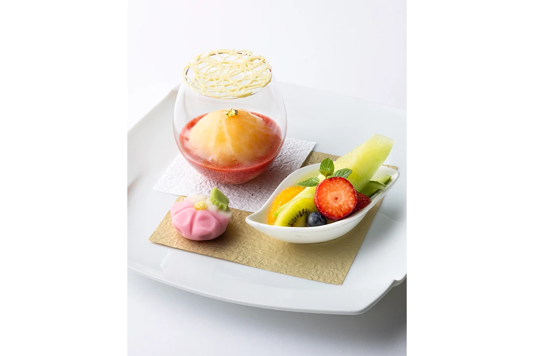 縁起物を随所に織り込んだ日本料理の会席と華やかなフランス料理が紡ぎ出す妙なる調べ。和洋の絶妙な調和は、どの年代のゲストにも喜ばれおふたりの心を込めたおもてなしを叶えます。