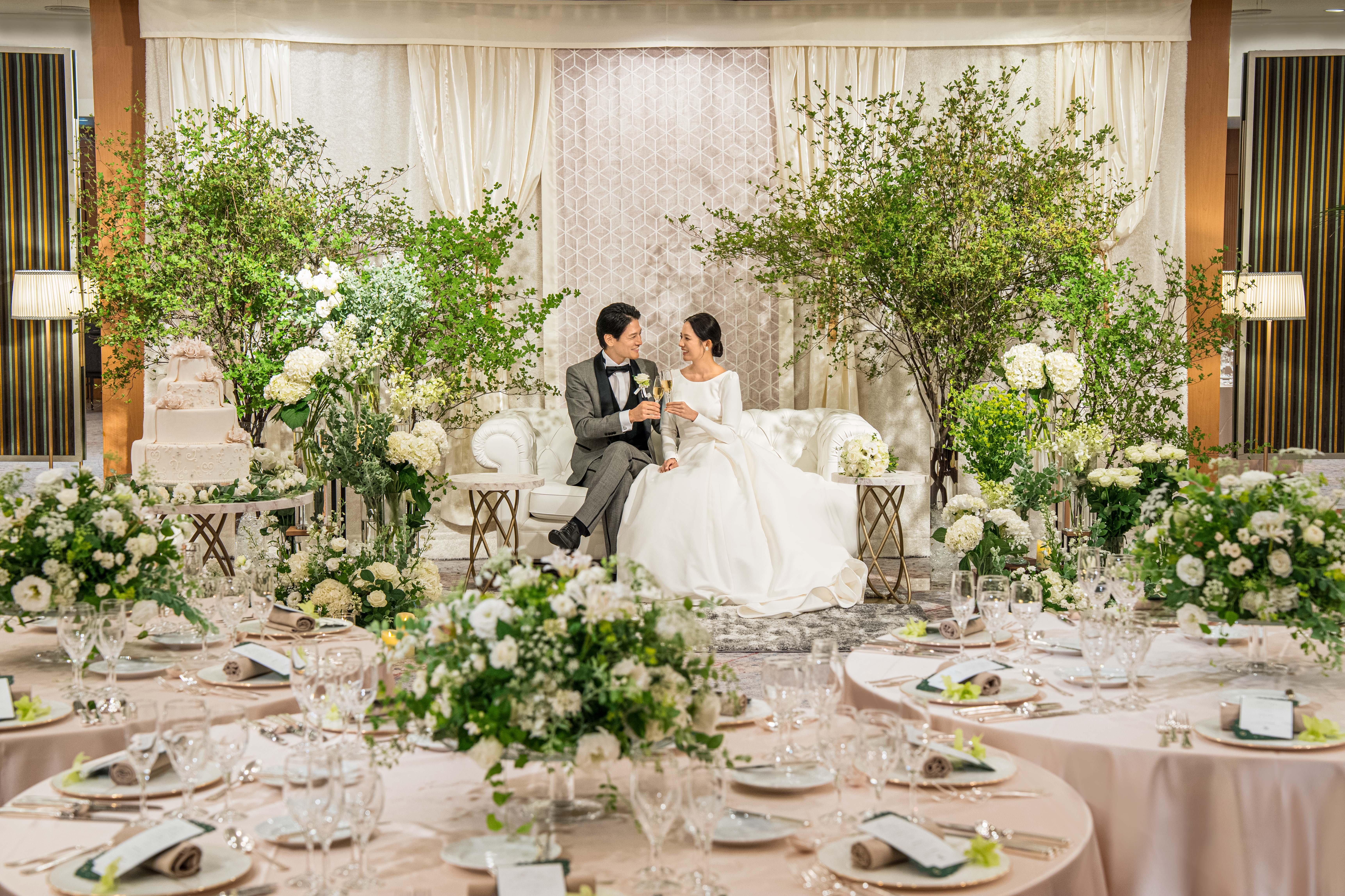 新郎新婦宿泊ご招待・衣裳割引・追加アイテム割引・1周年宿泊ご招待など豪華特典あり!(プランによって特典は異なります)