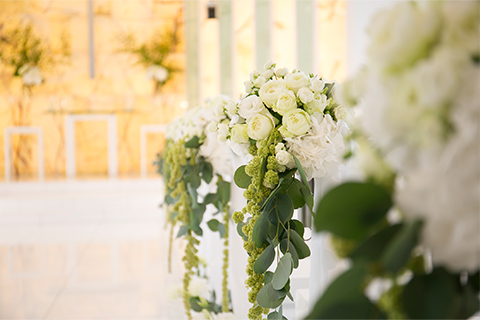 チャペルでの入場体験や披露宴会場の装飾・テーブルコーディネートなど、当日のイメージがぐっと膨らみます。
