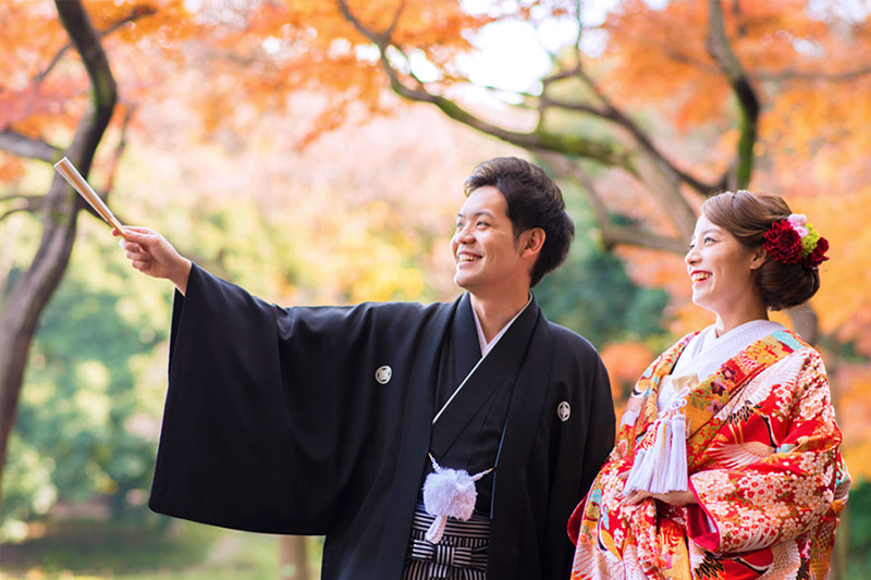 東京ドームシティに隣接する小石川後楽園での和装ロケーションプラン。 春には新緑、秋には紅葉など、季節毎に表情を変える美しい自然の中で素敵な写真を。