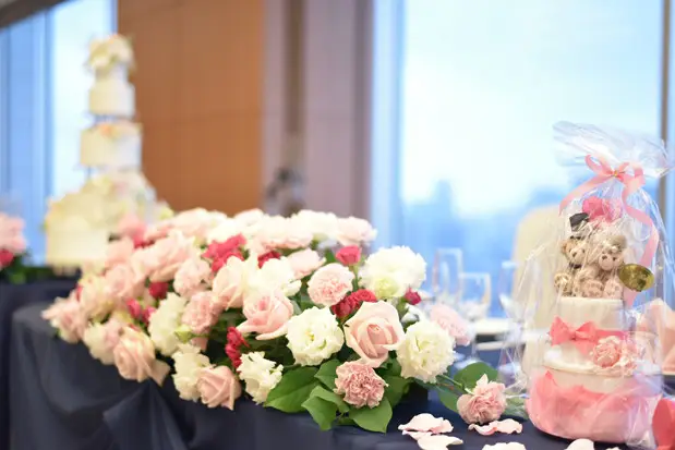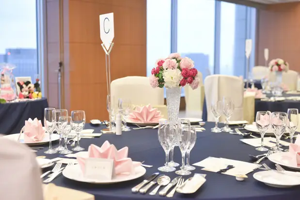 夕方から夜にかけての式でしたがシリウスの窓から見られる夕暮れから夜景に移り変わるところが綺麗でした。