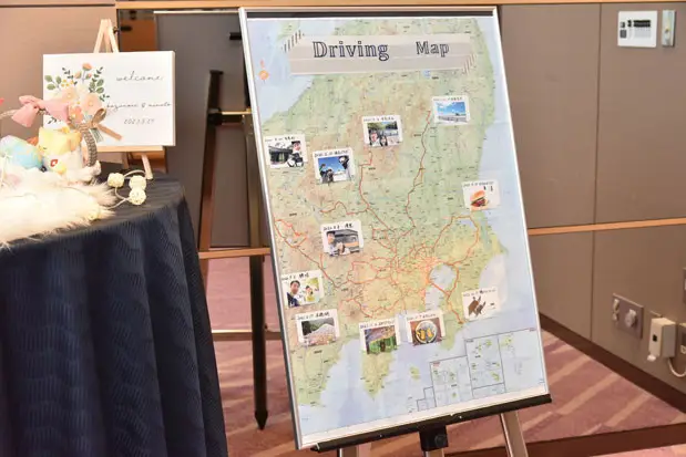 私たちの結婚式では、あるキャラクターをコンセプトとし、そのコンセプトに関連して披露宴で流すムービーを作成し、披露宴会場の装飾を決めていくという方法をとりました。披露宴の準備では想像以上に決めなければいけない事項が多く、初回の打ち合わせで決めることリストを提示された際は少し途方にくれました。ただ、はじめにコンセプトを決めたことで選択肢がおのずと定まっていき、またそのコンセプトに沿うようスタッフの皆さまから提案いただけたこともあり、スムーズに準備を進めることができたと感じています。悩む時間が減った分、アイテム作成に時間をさけたため、クオリティの高いオープニングムービーを準備しゲストを驚かすことができました。
