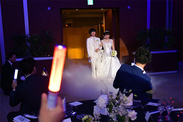 野球やコンサートでよく東京ドームに来ていたので親近感がありましたが、一番はライブウェディングのプランに惹かれたからです!ジェットスモークでの入場やオリジナルペンライト、謝辞終わりの金テープなど、自分がアイドルになった気分を味わえるところがやりたいと思ったポイントです!